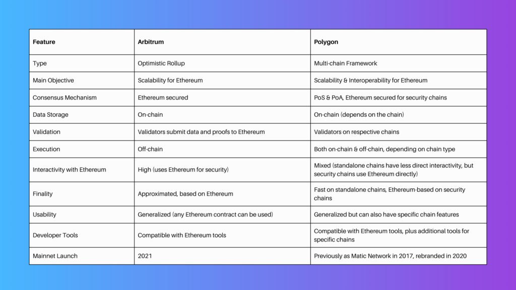 Choosing between these solutions is not a matter of which is objectively superior, but rather which aligns more closely with a project's unique needs and goals. Some may favor Arbitrum's streamlined integration with Ethereum, while others might lean towards Polygon's expansive toolkit and vision.