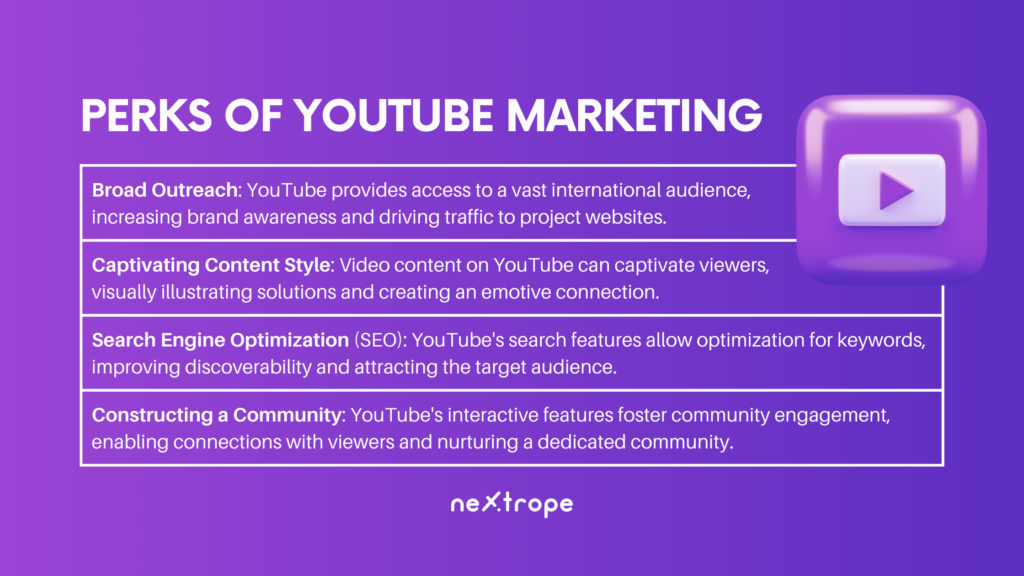 There are ample benefits associated with using YouTube for marketing Web 3 projects. The extensive reach of the platform, combined with effective search engine optimization, helps attract specific viewers and enhance brand awareness. Additionally, the community-building aspects of YouTube empower projects to build relationships, obtain feedback, and nurture a dedicated following.