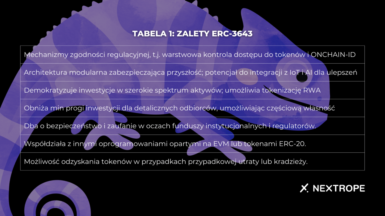 Tabela 1: Zalety ERC-3643