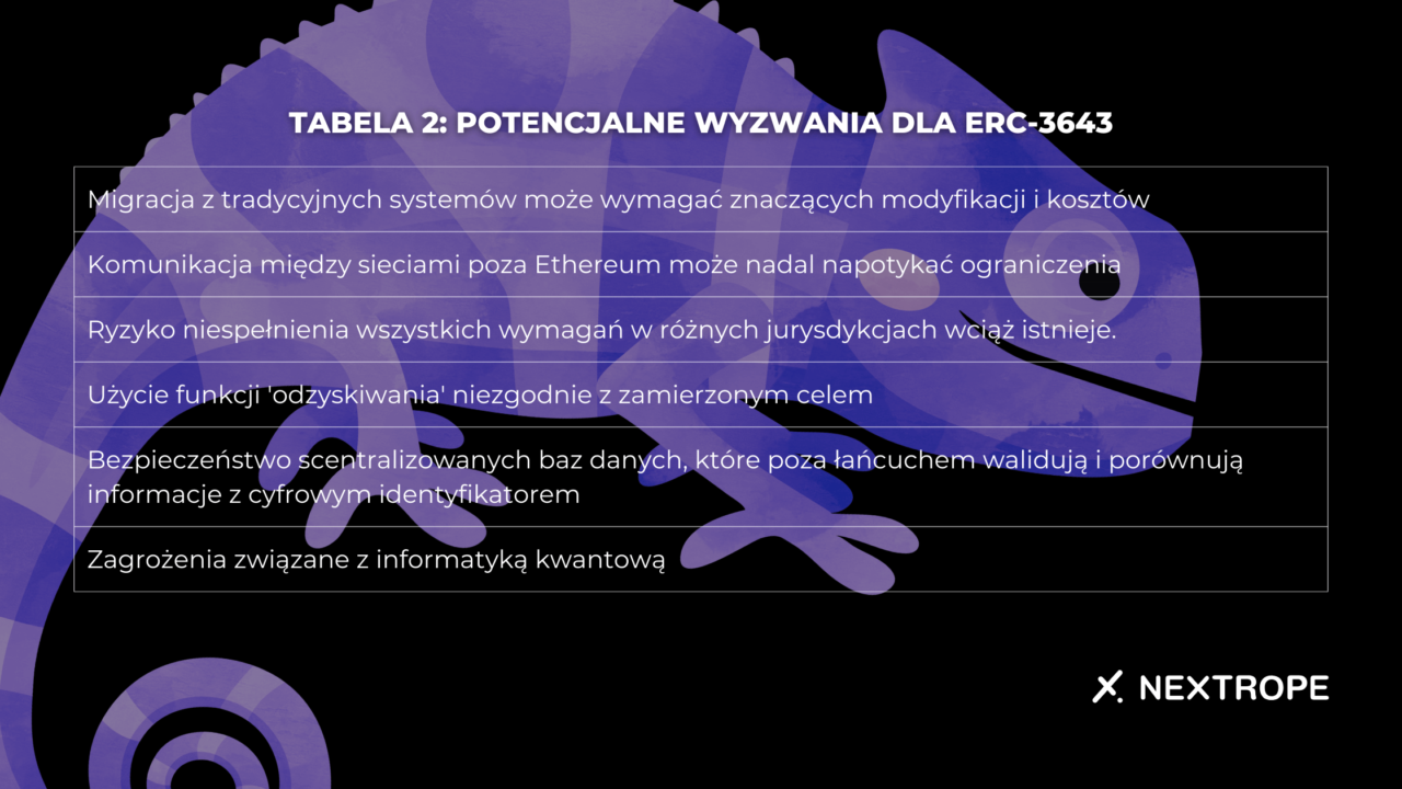 Tabela 2: Potencjalne wyzwania stojące przed ERC-3643