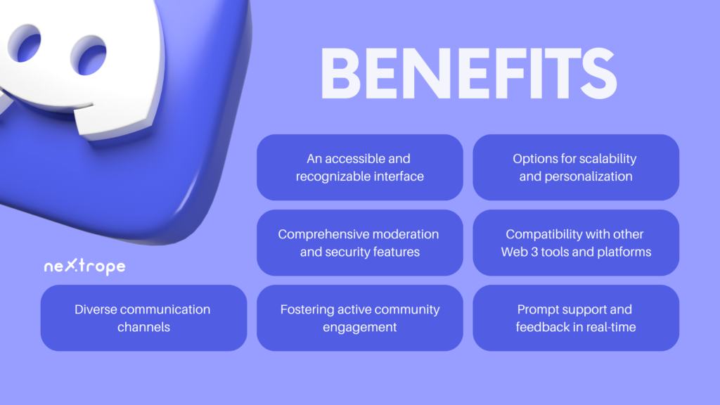Discord offers numerous benefits for Web 3 projects, making it a perfect communication tool for developers, enthusiasts, and community members. Here, we'll discuss the main advantages of utilizing Discord for Web 3 projects: