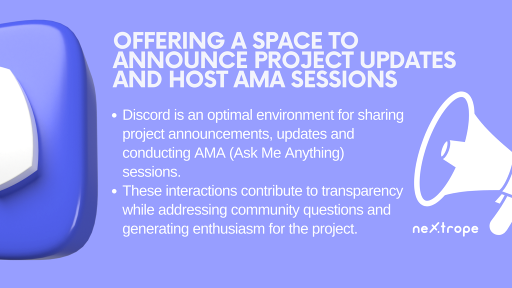 • Discord is an optimal environment for sharing project announcements, updates and conducting AMA (Ask Me Anything) sessions.