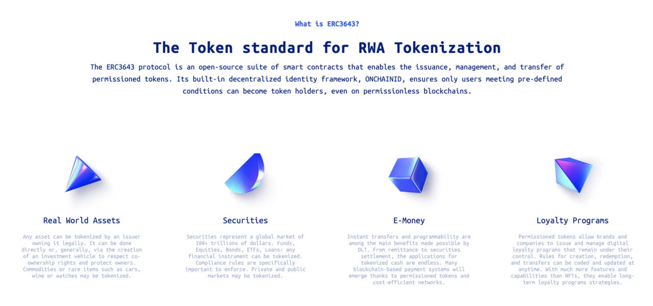 - ERC-3643 ensures regulatory compliance, offers flexibility and scalability, and provides a framework for tokenizing challenging assets, making it essential in modern asset management.