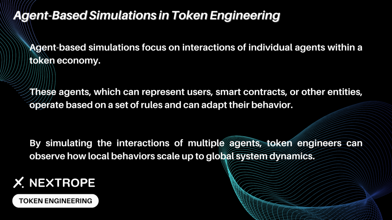 This type of simulation is particularly adept at capturing the emergent properties of decentralized systems. By simulating the interactions of multiple agents, token engineers can observe how local behaviors scale up to global system dynamics. Agent-based models are invaluable for studying phenomena related to spreading information. For example, the spread of adoption of new token functionalities, or the resilience of the system against coordinated attacks